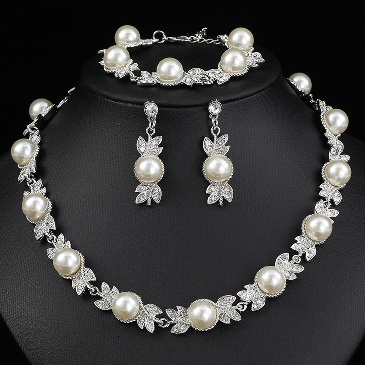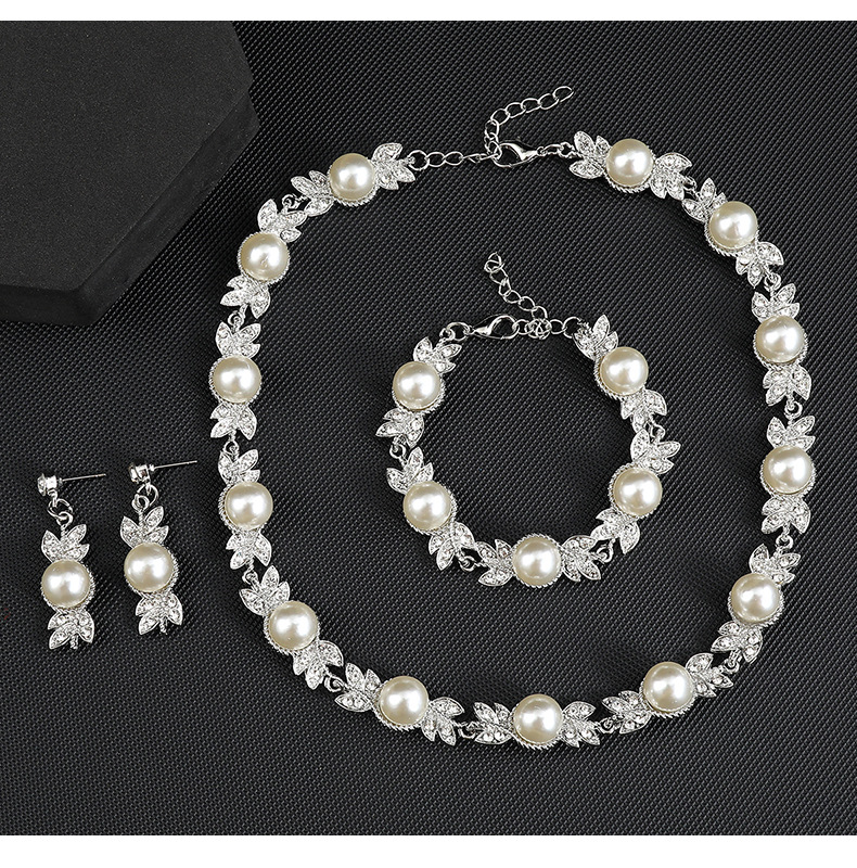 Elegant Faux Pearl & Rhinestone Jewelry Set (3-PCS: Necklace & Earrings&Bracelet) GSZ0007