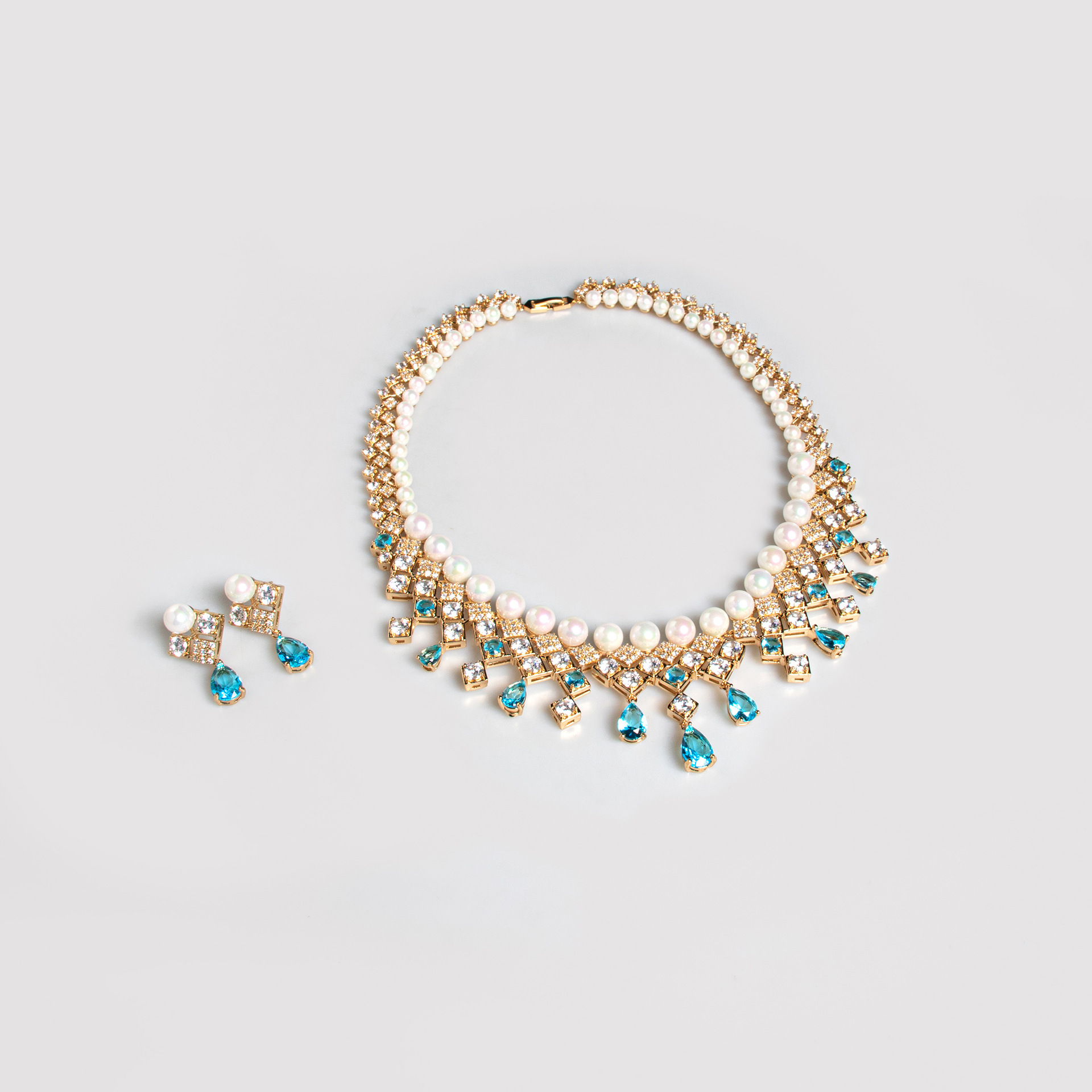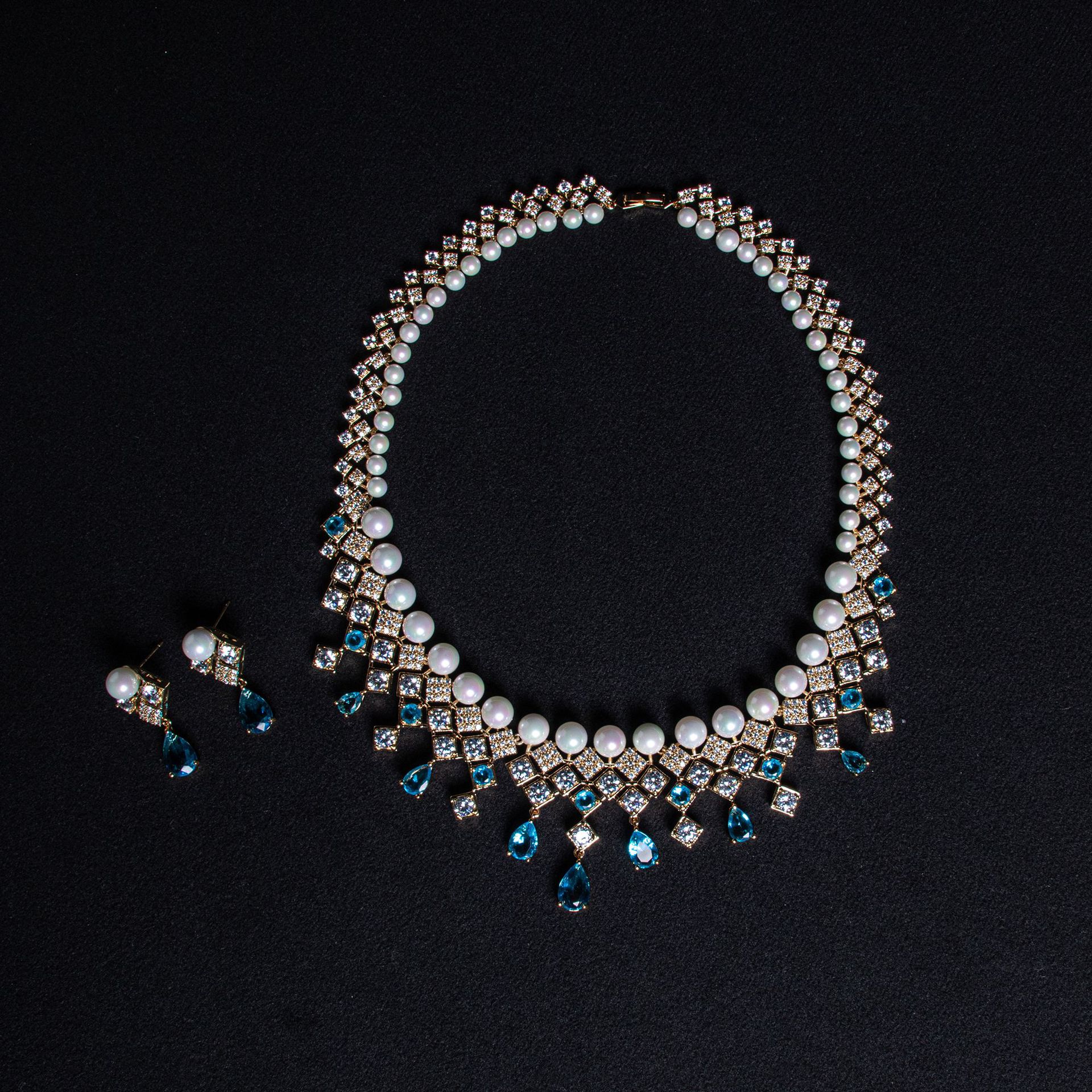 High-Glow Zirconia Pearl Jewelry Set (2-PCS: Necklace & Earrings) GS0190 数量