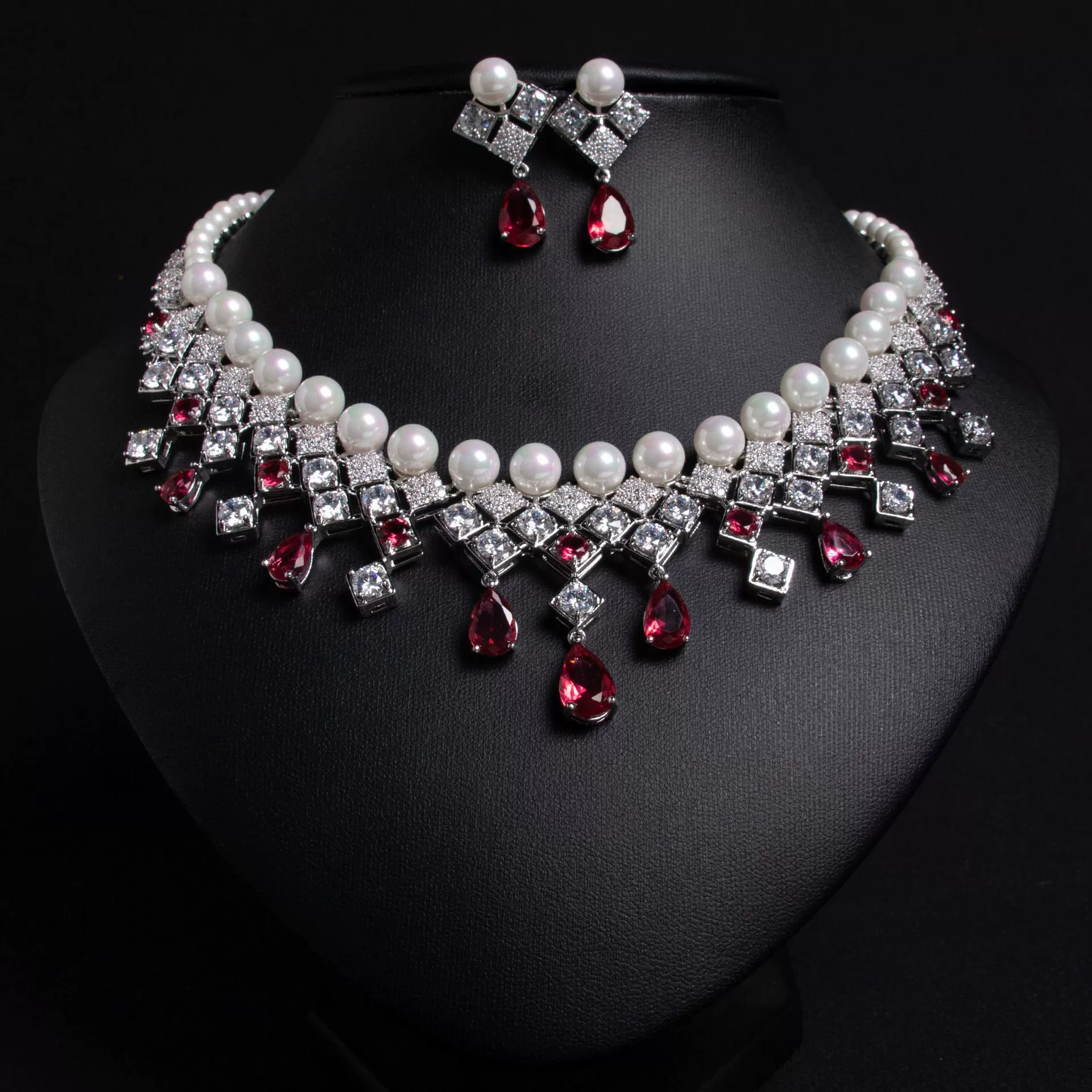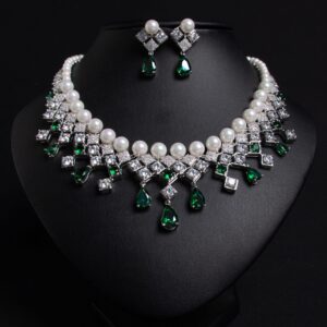 High-Glow Zirconia Pearl Jewelry Set (2-PCS: Necklace & Earrings) GS0190