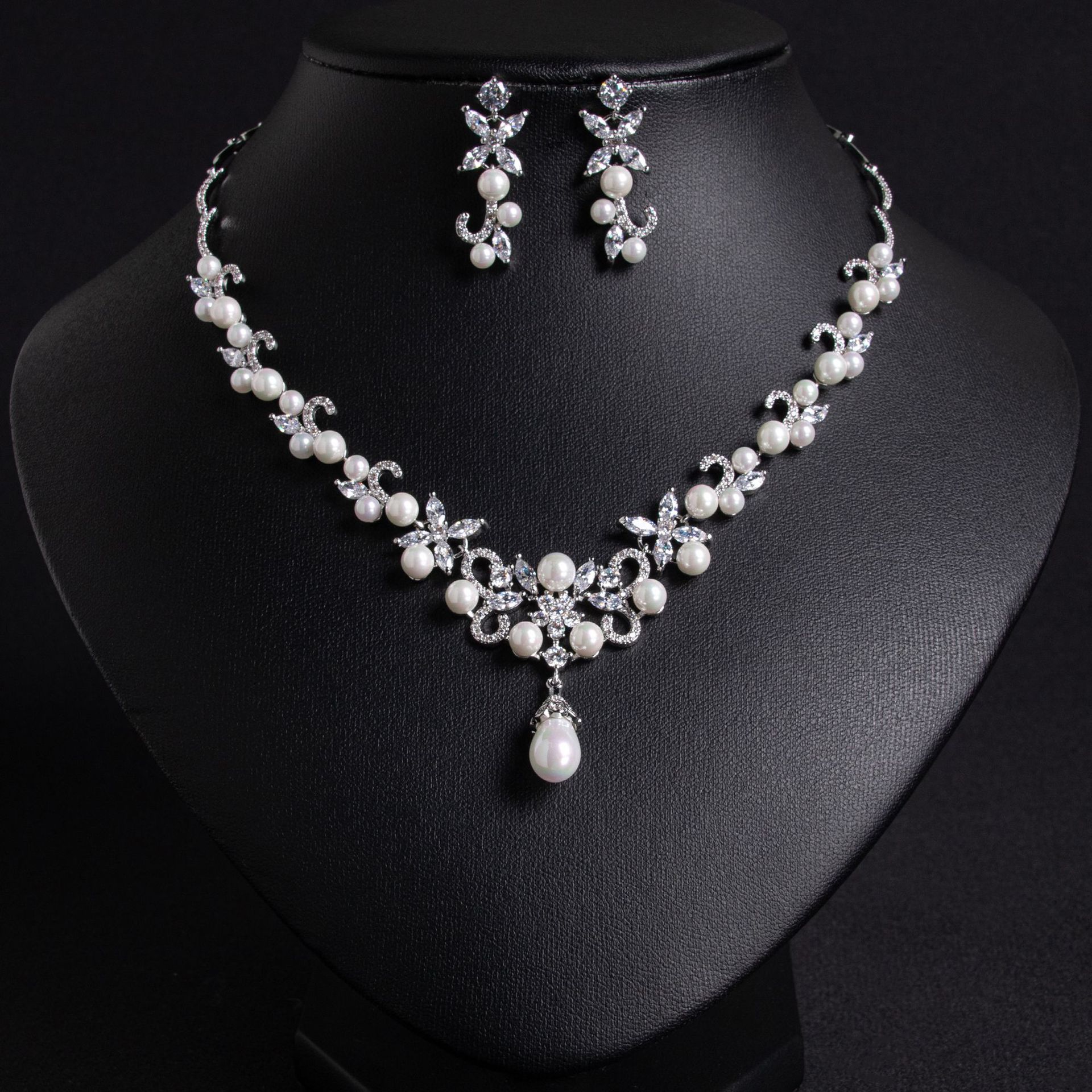 High-Glow Zirconia Pearl Jewelry Set (2-PCS: Necklace & Earrings) GS0275