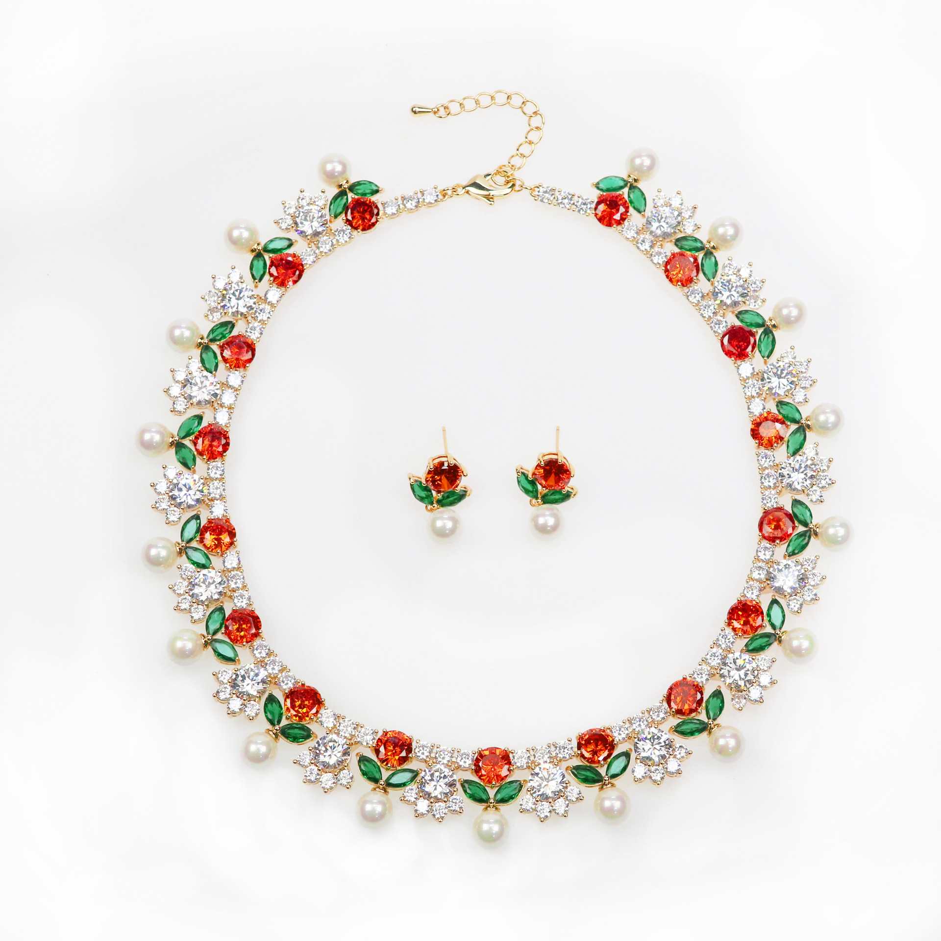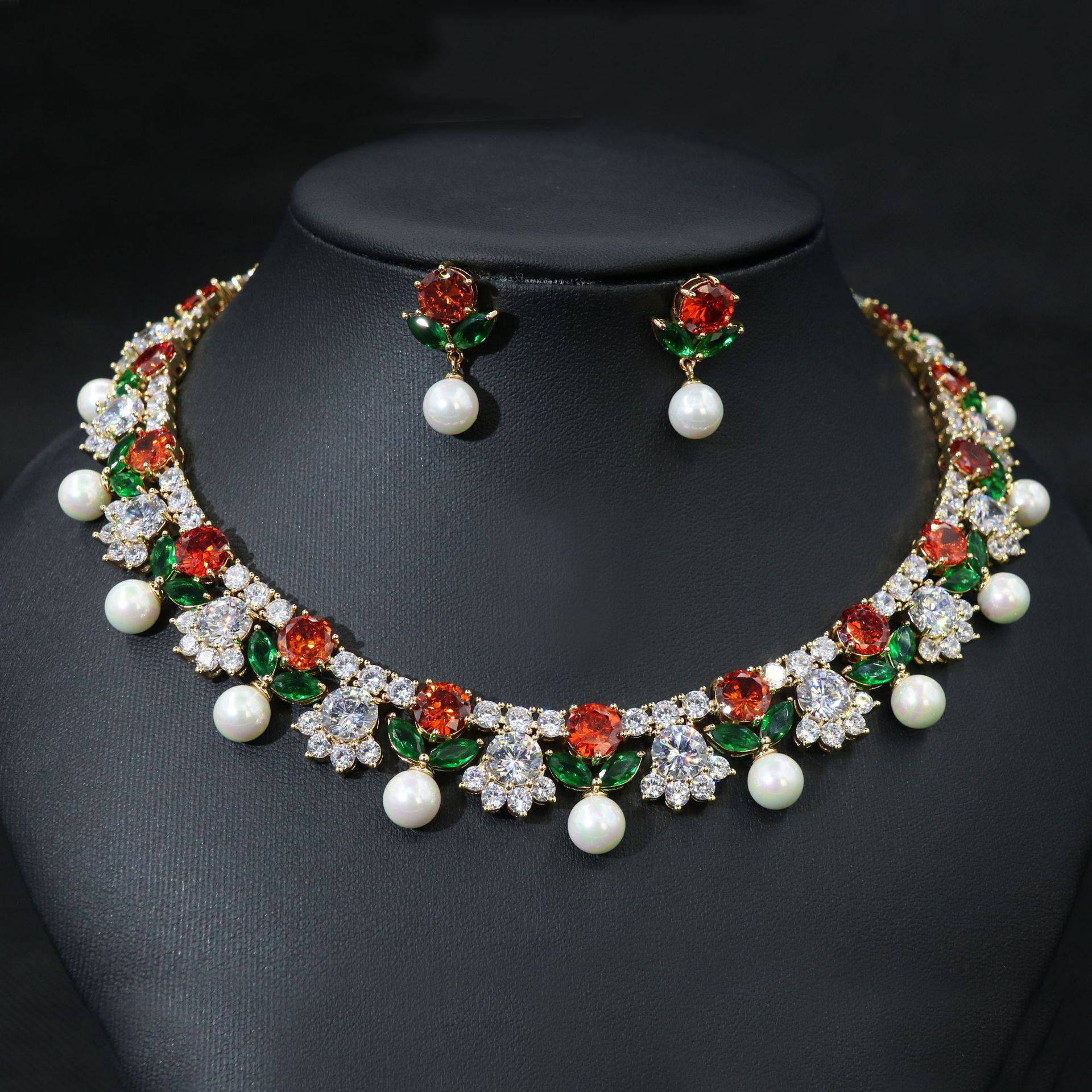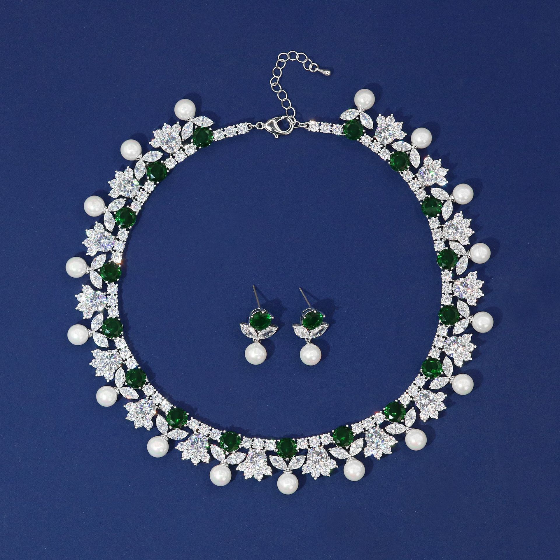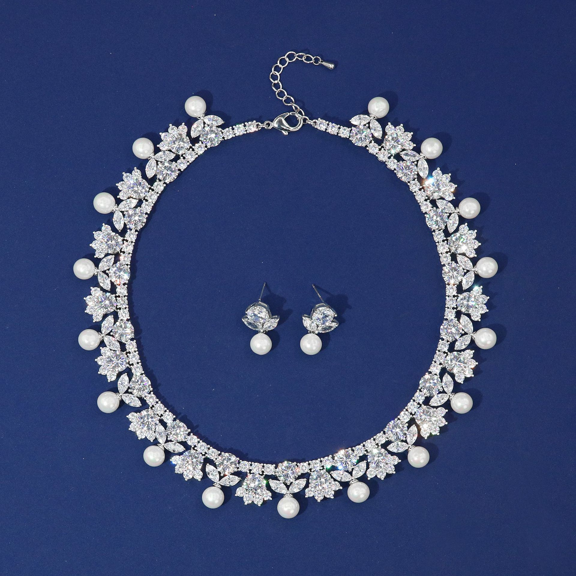 High-Glow Zirconia Pearl Jewelry Set (2-PCS: Necklace & Earrings) GS0362 数量