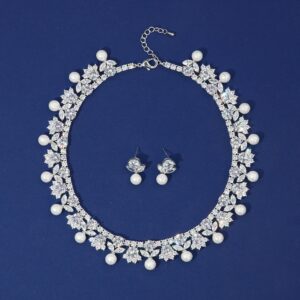 High-Glow Zirconia Pearl Jewelry Set (2-PCS: Necklace & Earrings) GS0362