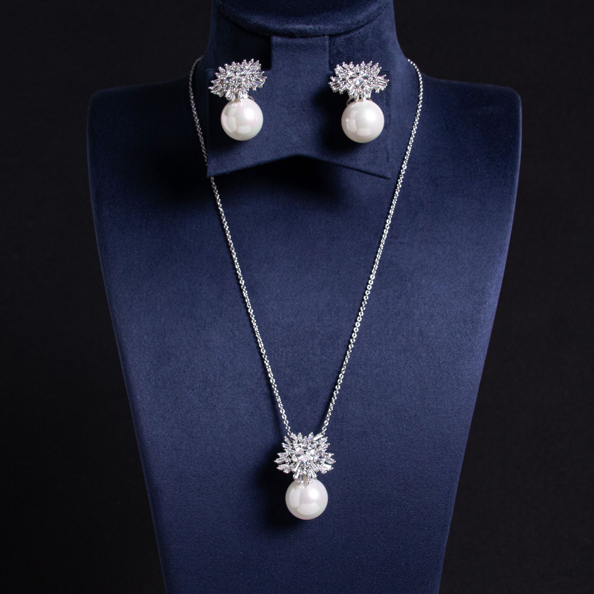 High-Glow Zirconia Pearl Jewelry Set (2-PCS: Necklace & Earrings) GS0402